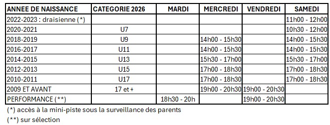 Vous trouverez ci-dessous le planning prévisionnel des entraînements pour la saison 2025-2026.